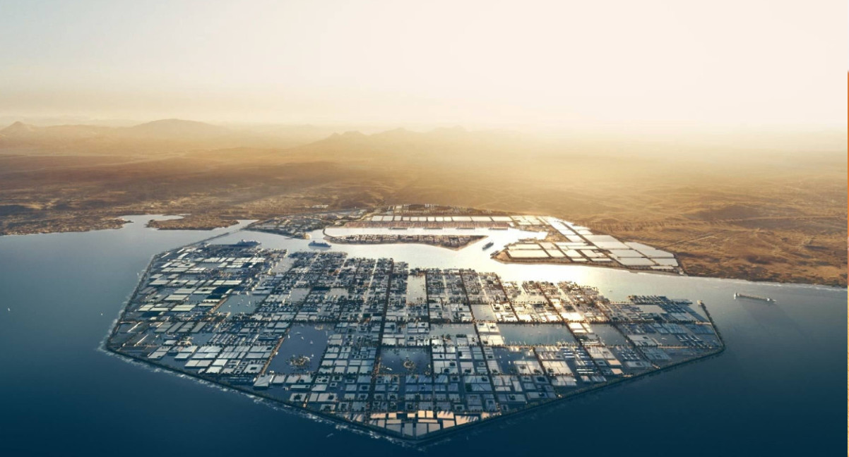 Ubicada en el templado noroeste de Arabia Saudita esta ciudad futurista será un lugar para vivir y trabajar, pero también será un espacio turístico. El plan es que se construyan 9 millones complejos habitacionales.