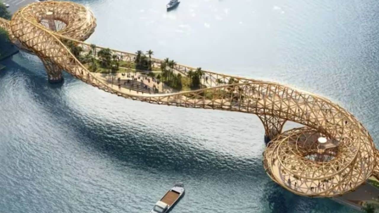 La estructura, diseñada por el famoso estudio de arquitectura MVRDV, propone un entramado metálico dorado con forma de celosía que envuelve la pasarela central, creando una silueta distintiva sobre el agua . En su punto medio, el puente se ensancha para albergar un jardín con terrazas escalonadas y áreas de descanso, permitiendo a peatones y ciclistas detenerse, contemplar el río y tomar fotografías . 📸