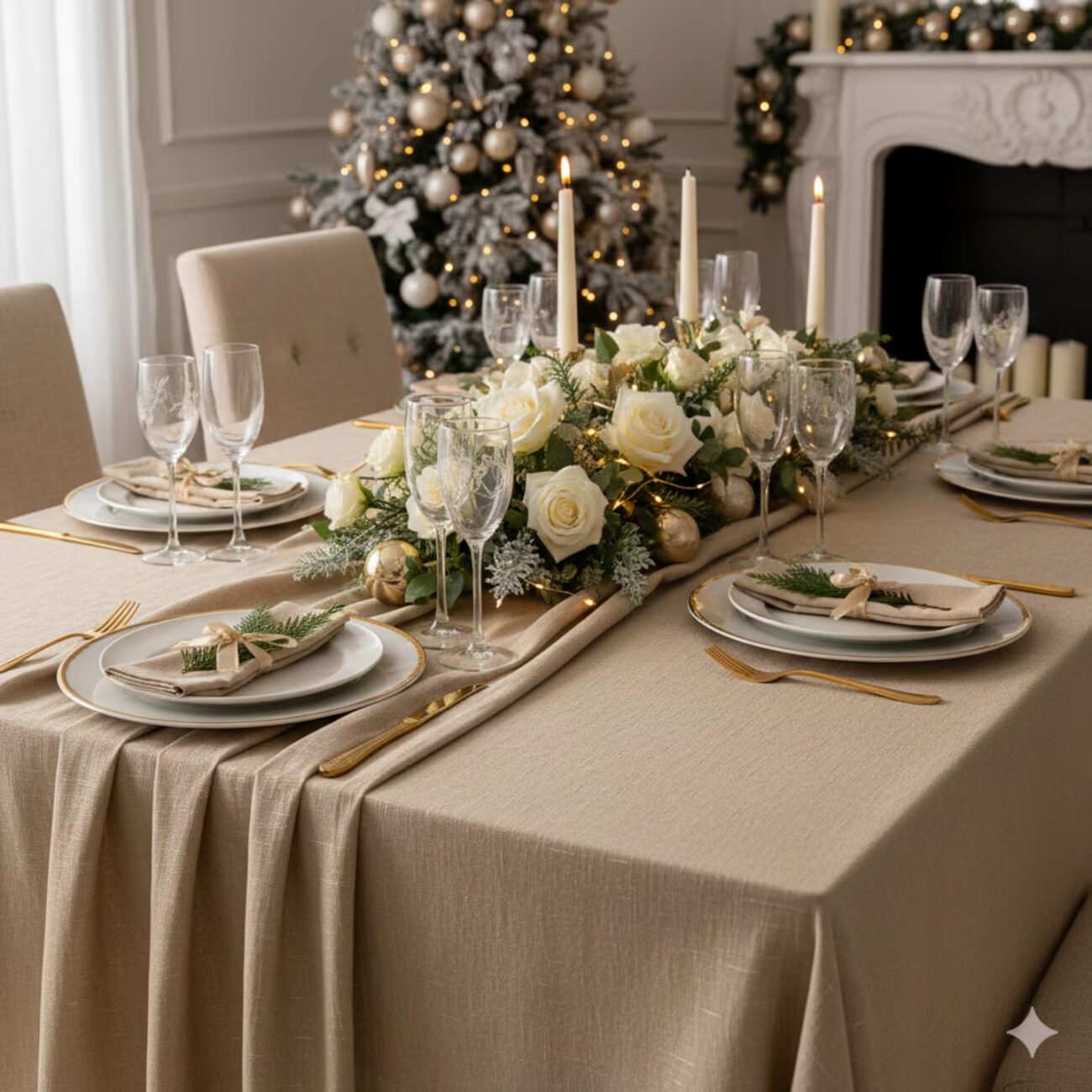 ¡Llegó la hora de renovar la tradición! 😍 Este año, despídete de los clásicos rojo y verde en tu mesa. La tendencia mundial para el mantel navideño es un tono elegante y luminoso: el BEIGE CHAMPAGNE. 🥂
