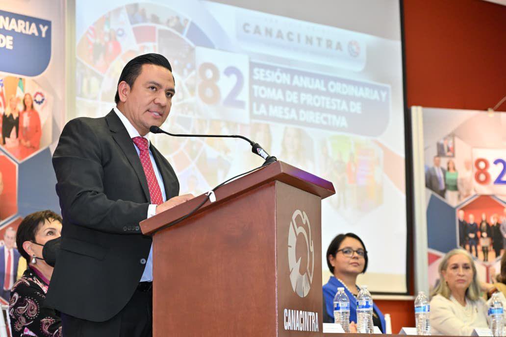 Con la representación del Gobernador Ricardo Gallardo Cardona, el secretario General de Gobierno, J. Guadalupe Torres Sánchez, encabezó la toma de protesta de la Mesa Directiva 2026-2027 de la Cámara Nacional de la Industria de la Transformación (Canacintra), presidida por segundo año por Imelda Elizalde Martínez, con la presencia de la dirigente nacional del organismo, María de Lourdes Medina Ortega. En el encuentro se reafirmó que la gobernabilidad, la estabilidad y la certeza jurídica sostienen un entorno de desarrollo sin límites para la actividad productiva.