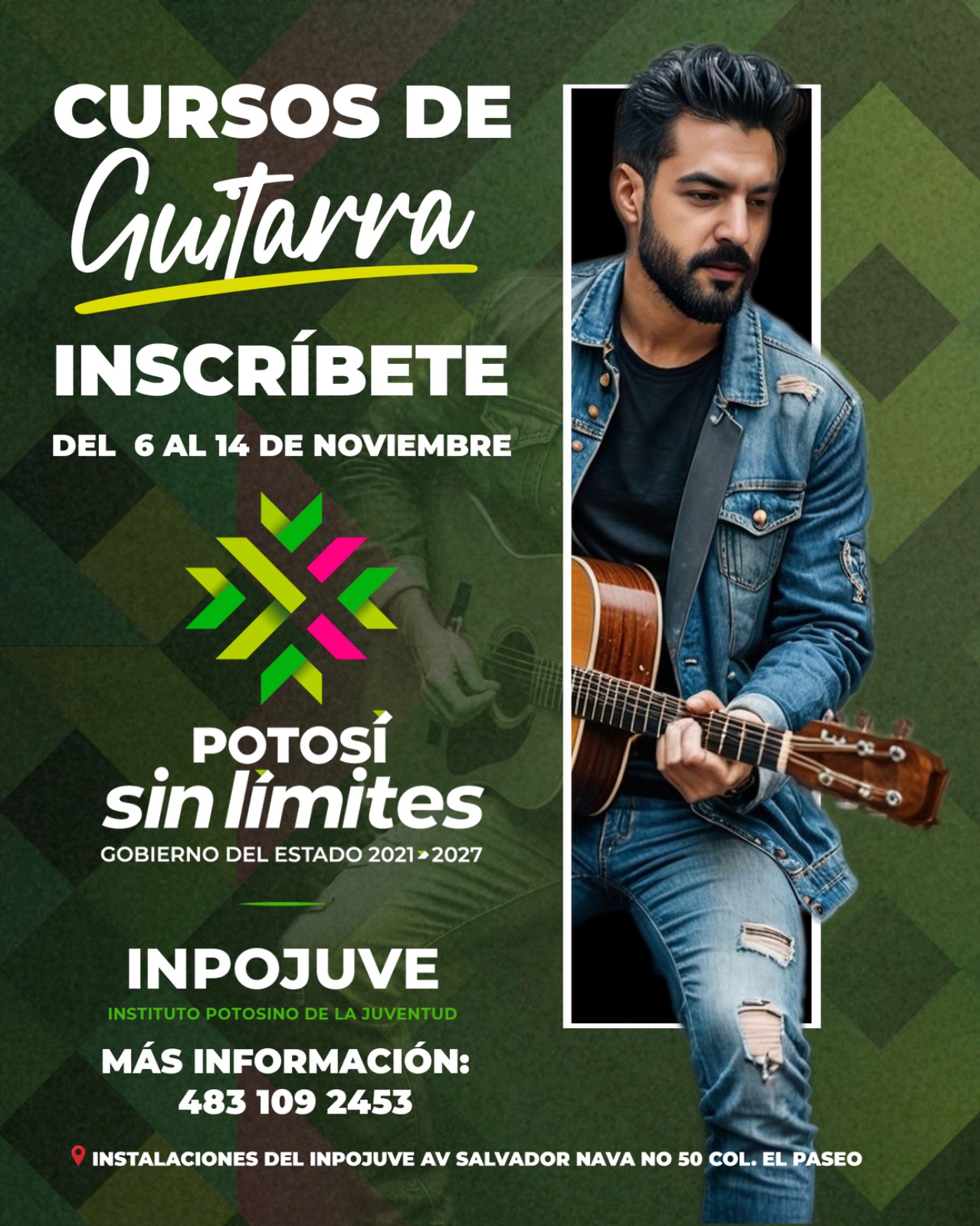 El Instituto Potosino de la Juventud (Inpojuve), mantiene abierta la convocatoria hasta el 14 de noviembre para el curso de guitarra dirigido a niñas, niños y jóvenes potosinos, que busca fortalecer las habilidades artísticas y promover la expresión musical en las juventudes.