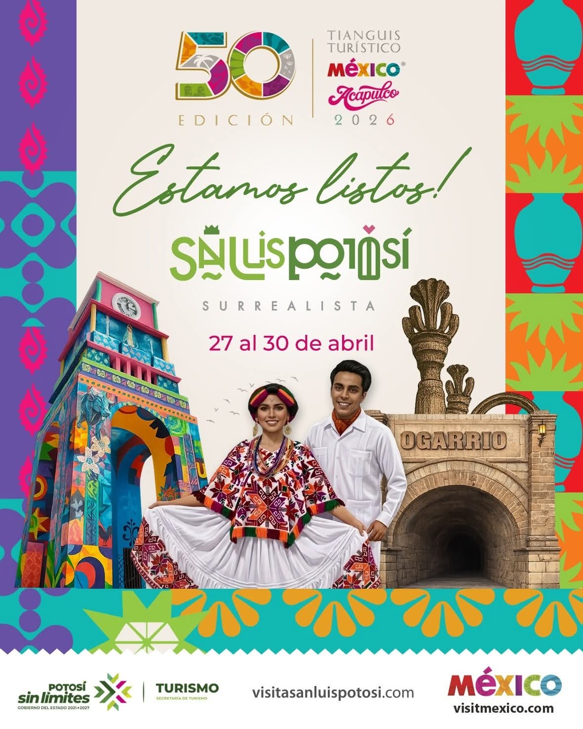 Cumpliendo con el compromiso del Gobernador Ricardo Gallardo Cardona de llevar a San Luis Potosí a los principales escenarios de promoción, la entidad participa en la edición 50 del Tianguis Turístico de México 2026, que se realiza del 27 al 30 de abril en Acapulco, Guerrero, refrendando un impulso sin límites para consolidar al Estado como uno de los destinos con mayor crecimiento del país.