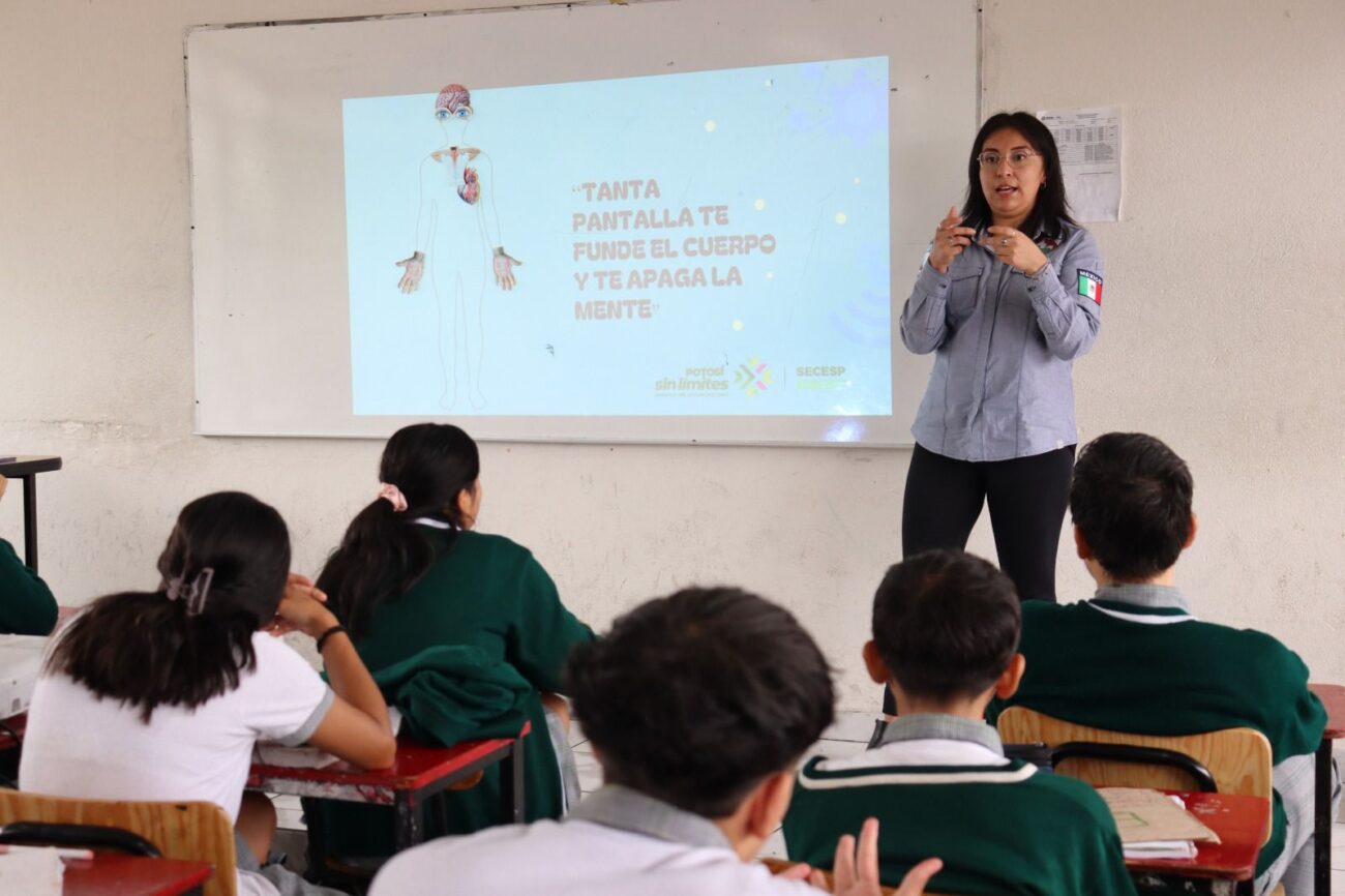 Por instrucción del Gobernador del Estado, Ricardo Gallardo Cardona, la dependencia sensibiliza sin límites a las y los estudiantes para evitar tener afectaciones por el uso excesivo de la tecnología, donde destacan las afectaciones como: irritabilidad, dificultad para concentrarse, insomnio, depresión, problemas de pesos y obesidad, dolor de cabeza, problemas de conducta, entre otros.